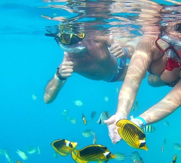 ♦ 08:00 am: On this day, you will enjoy a wonderful Marine Island Trip for snorkeling and Lunch on board with soft drinks.